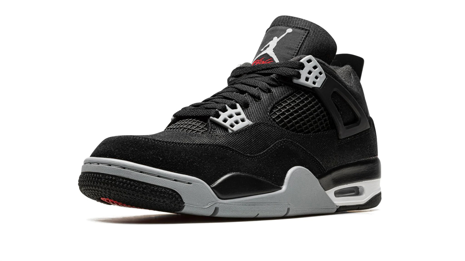 The Jordan 4 “Black Canvas” is a stealthy. mostly monochromatic colorway of the retro basketball shoe. The “Black Canvas” Jordan 4 is a versatile colorway of Michael Jordan's fourth signature shoe that features a black canvas construction. Black netting appears on the tongue and on the mid-panel. Light Steel Grey eyelet panels contrast the shoe's black-based appearance. A grey Jumpman is found on the heel and on the black canvas tongue. Underfoot. a black and white foam midsole and visible Air cushioning unit in the heel and a grey rubber outsole complete the clean design. Release date: October 1. 2022