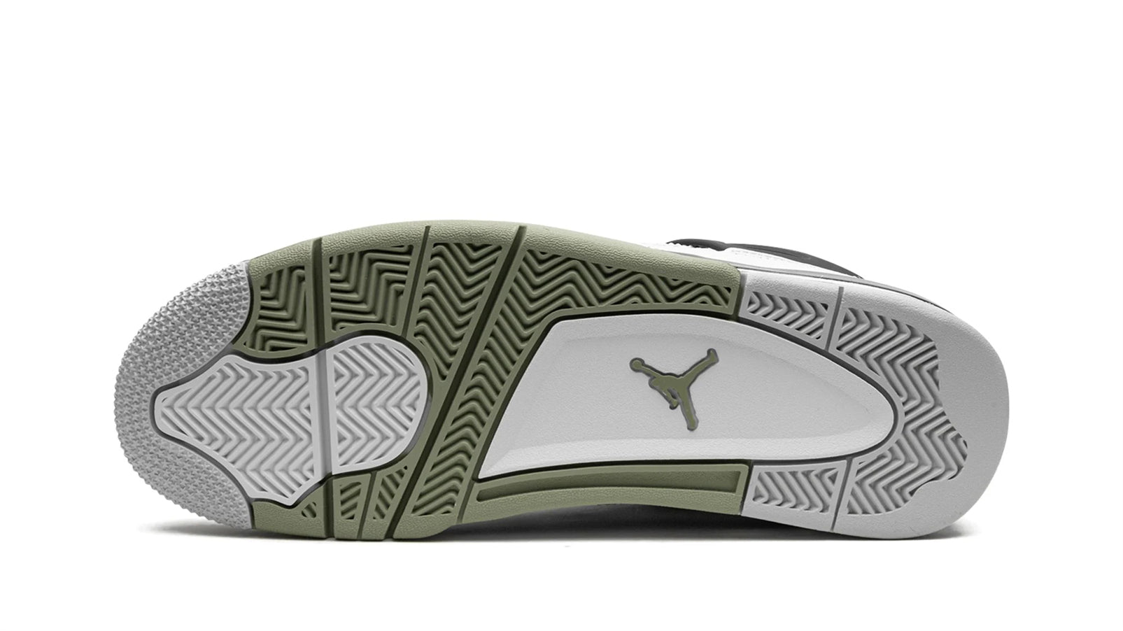 The Women's Jordan 4 “Oil Green” is a women's-exclusive colorway of the classic sneaker that adds to its impressive collection of releases. In the “Oil Green” colorway. this Jordan 4 is complete with a white leather construction with tonal netting on the tongue and mid-panel. Seafoam-colored eyelets are found on the sides of the shoe and additional Seafoam accenting appears on the Jumpman on the tongue and on the heel. The minty-green hue is also on the interior collar and on the rubber overlay on the toe and forefoot on the outsole. A visible Air bubble appears in the heel of the midsole. Release date: February 9. 2023