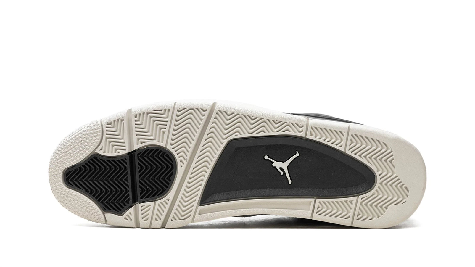 This sneaker features a straightforward colorway of Light Bone. black. and dark gray. Although the majority of the sneaker's design elements come from the Jordan 4. they are reimagined for modern audiences. For example. the plastic lace wings on the side panel take on a different shape and the sneaker doesn't include visible mesh panels on the upper. Leather and durable textile make up the upper. while strong. flexible plastic caging wraps around the shoe and provides support. Like the Jordan 4. this version of the Jordan 4 RM features visible Air Max cushioning and a rubber outsole.