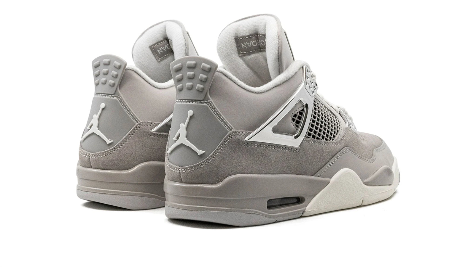 The Women's Jordan 4 “Frozen Moments” is a women's-exclusive colorway of Michael Jordan's fourth signature shoe with a versatile appearance. The “Frozen Moments” features a Light Iron Ore suede construction with tonal overlays. White netting is seen on the tongue and mid-panel. The “wings” on the collar and eyelets are finished off in Metallic Silver. Classic Jumpman branding is located on both the tongue and heel. Underfoot. the grey foam midsole completes the look. Release date: August 26. 2023